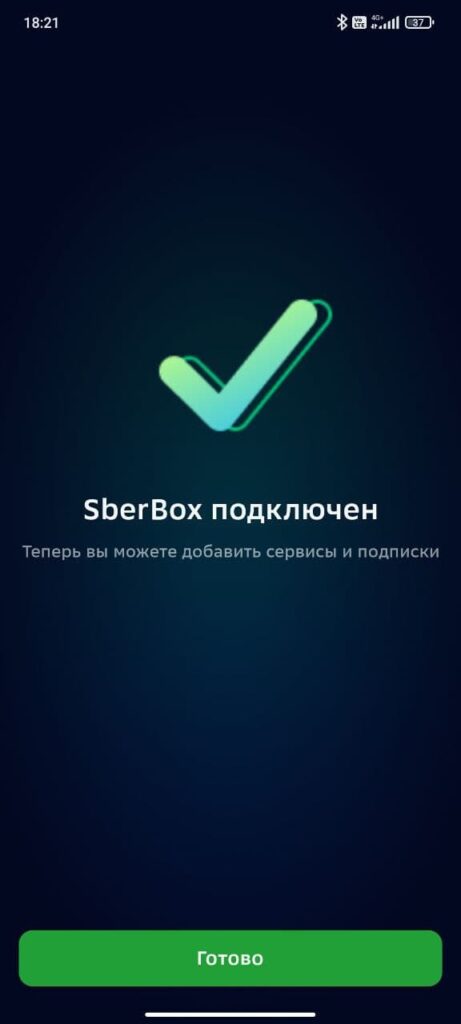 После обновления бокс перезагрузится и пойдет привязка к аккаунту Сбер ID (нужно приложение Сбер Салют).