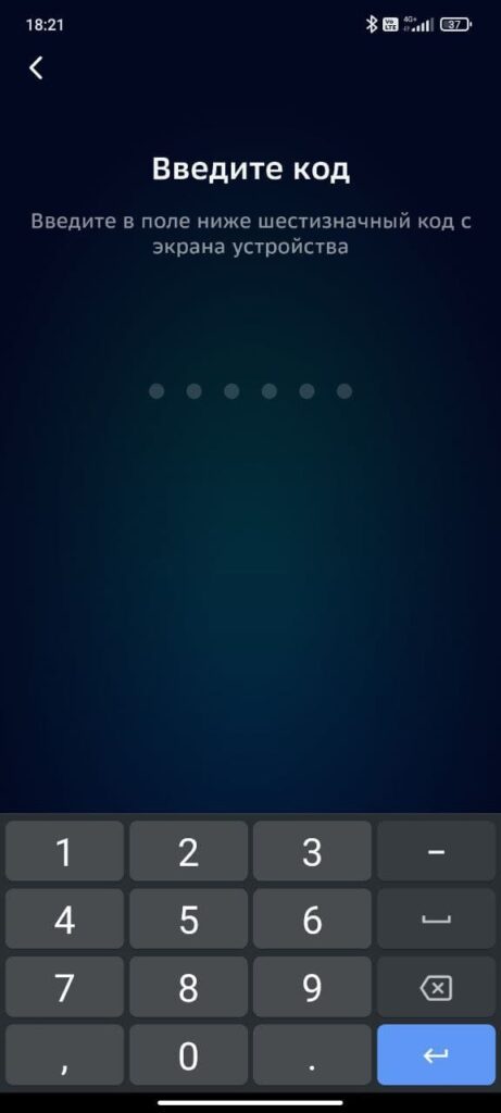 Здесь код, который нужно ввести в приложение для привязки. Двигаемся к мобилке!